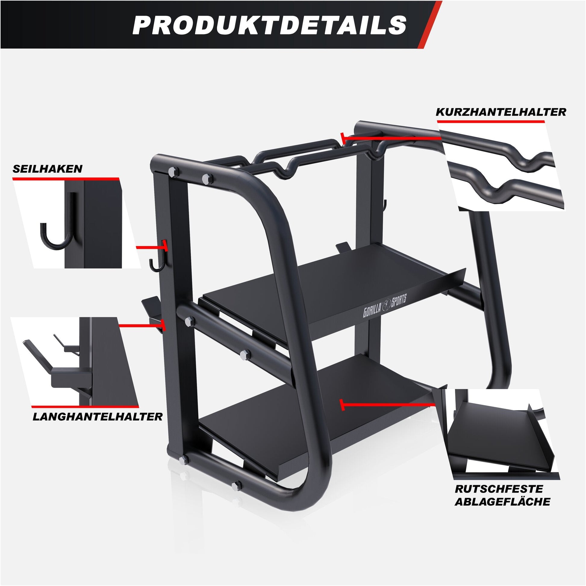 Organisiert Hanteln, Kettlebells, Langhanteln und weiteres Fitness-Equipment effizient – ideal, um den Trainingsbereich sauber und ordentlich zu halten.