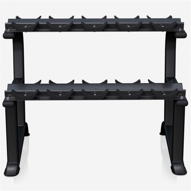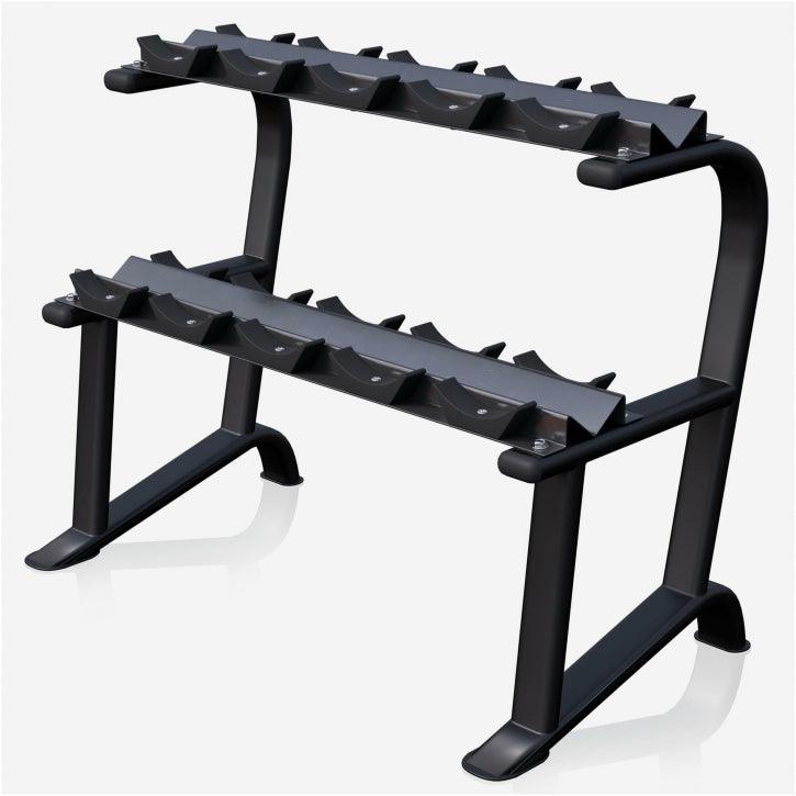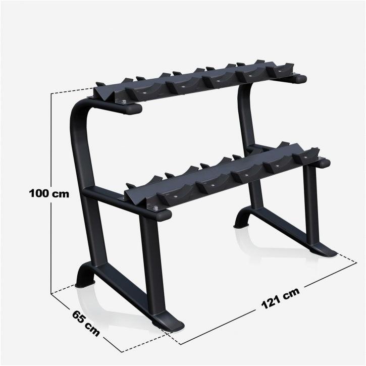 Suchst Du beim Üben oft nach der passenden Hantel, die irgendwo unter anderen Geräten vergraben ist? Mit der praktischen Kurzhantelablage sorgst Du in Deinem Studio für Ordnung. Die Ablage bietet auf zwei Etagen Platz für bis zu fünf Paar Kurzhanteln. Du legst sie nach dem Gewicht sortiert ab und hast so einen schnellen und präzisen Zugriff auf Deine Übungsgeräte. Die Kurzhantelablage stellst Du einfach auf den Boden oder auf einen soliden Tisch. Das schicke Design mit den leicht geschwungenen Füßen passt gut in jede Einrichtung. So macht der Sport mit den Gewichten doppelt Spaß!